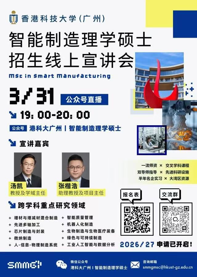 1. 香港科技大学广州|智能制造理学硕士学位项目26Fall招生宣讲会—线上专场
